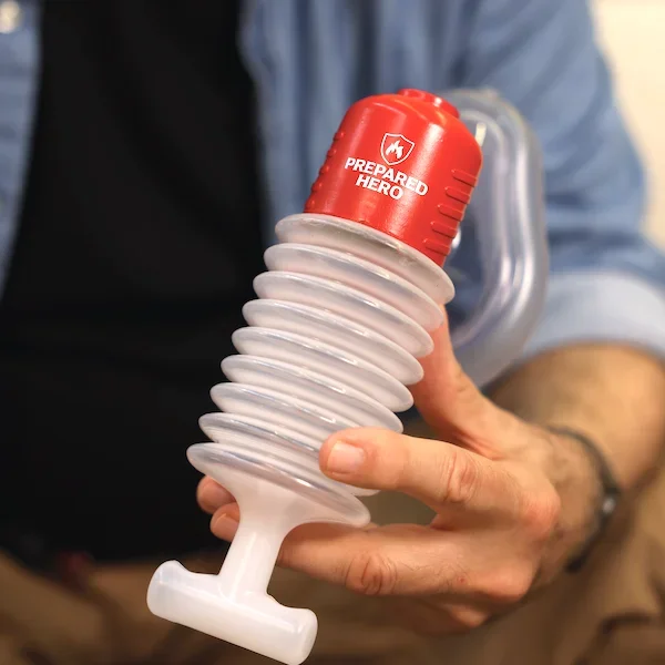 The Prepared Hero Choking Rescue Device uses powerful single-action pump technology to clear blocked airways quickly.