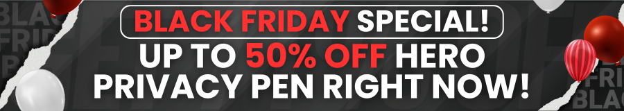 The Hero Privacy Pen is about the size of a typical magic marker: 5.31” x .87” x .47”, perfect for travel and portability.